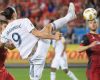 Jonathan dos Santos lifts the ball into the box where Zlatan Ibrahimovic spins to hit the ball out of mid-air for his 500th career goal.